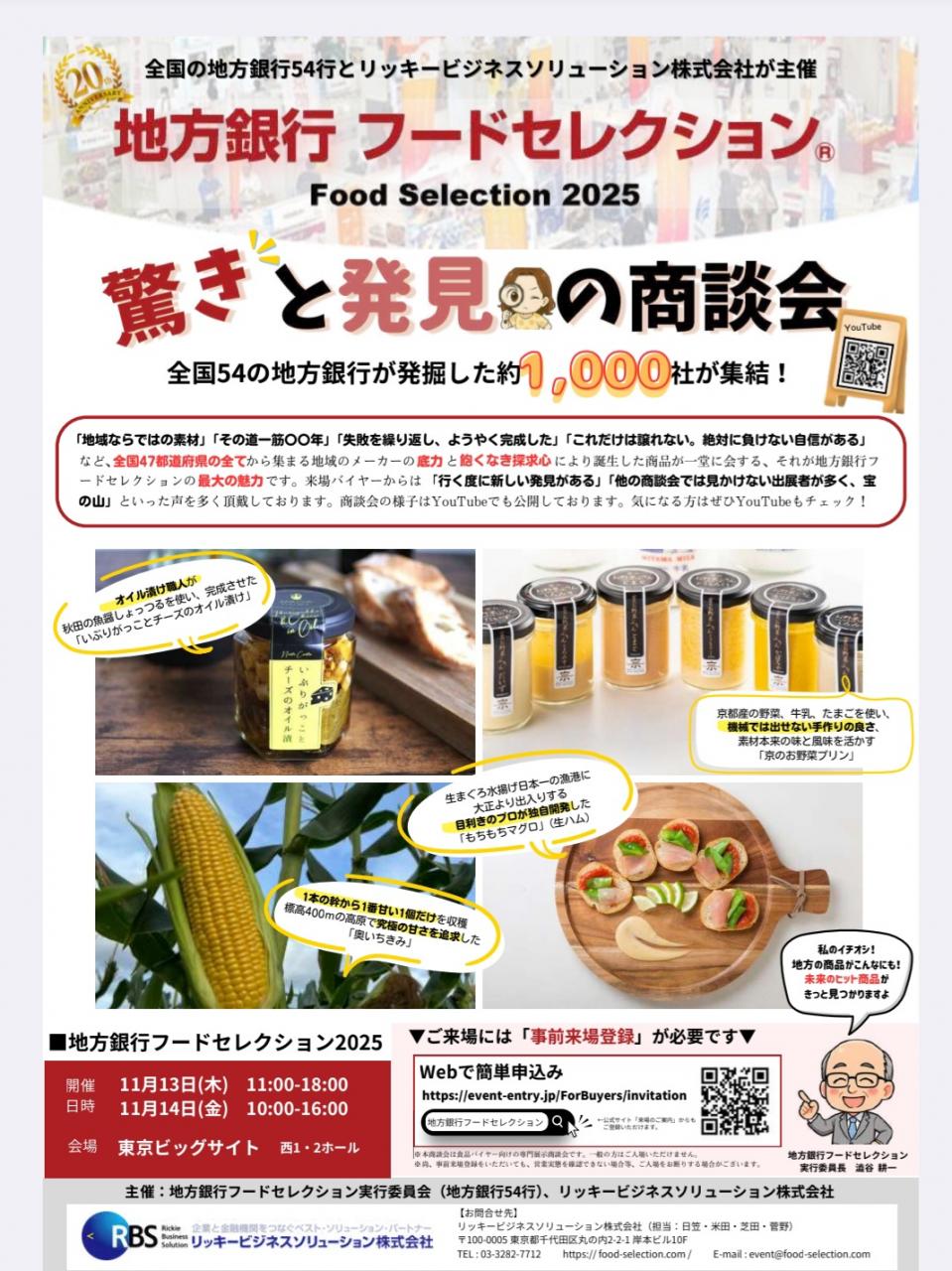11/13(木)14(金)は地方銀行フードセレクション2025出展のため、東京ビックサイトにいます✈️